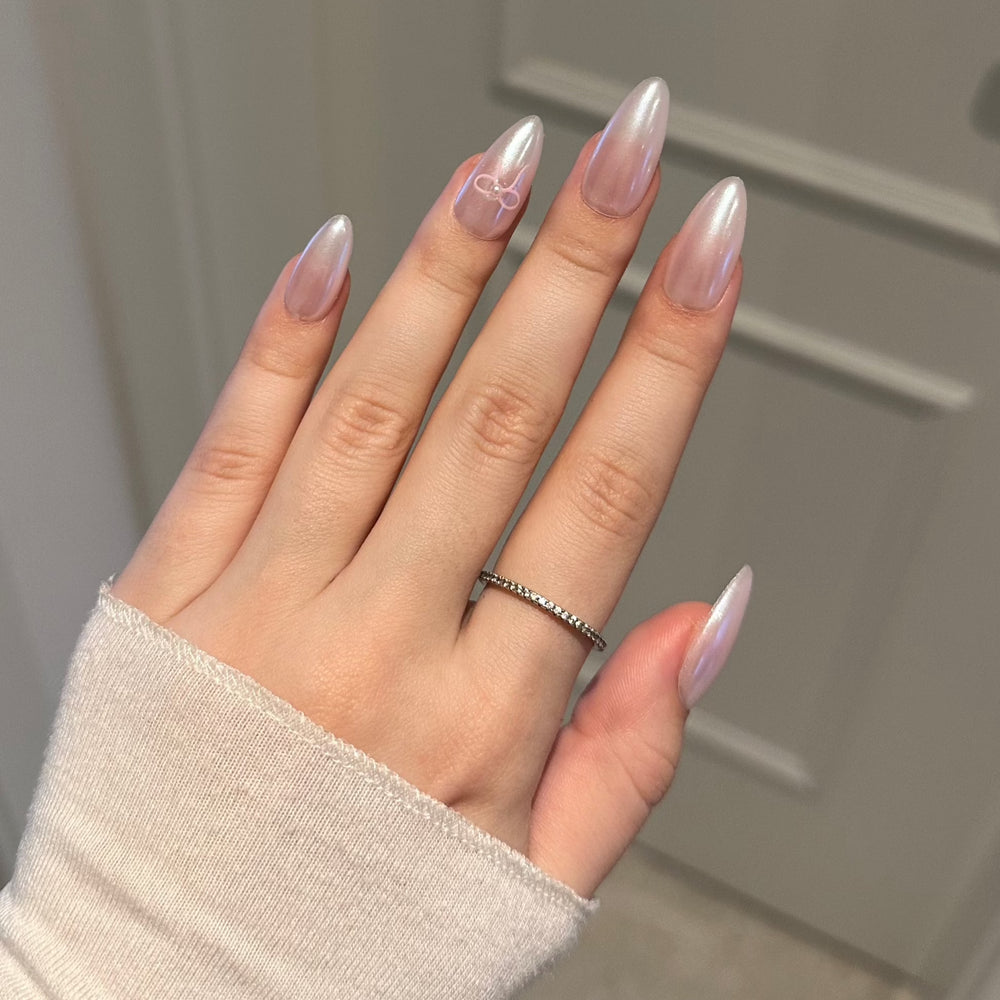 - Přitiskni umělý nehet pod nehtovou kůžičku a jemně přikládej dolů tak, aby nevznikly vzduchové bubliny.