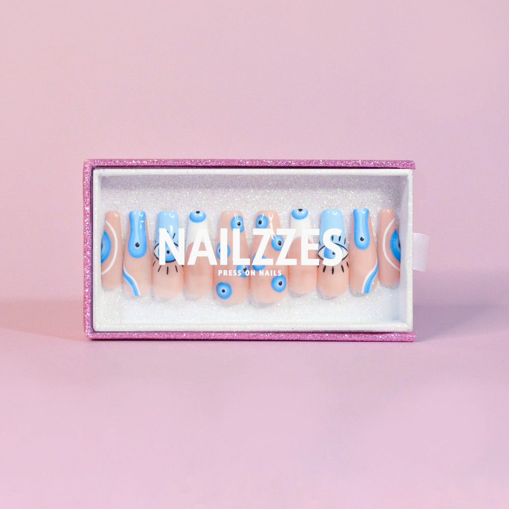 Nalepovací nehty EVIL EYE navržené influencerkou SugarDenny tě ochrání před zlými pohledy, pomluvami nebo uhranutím. Nositel tohoto symbolu je ochráněn před prokletím a zlomyslnými lidmi.