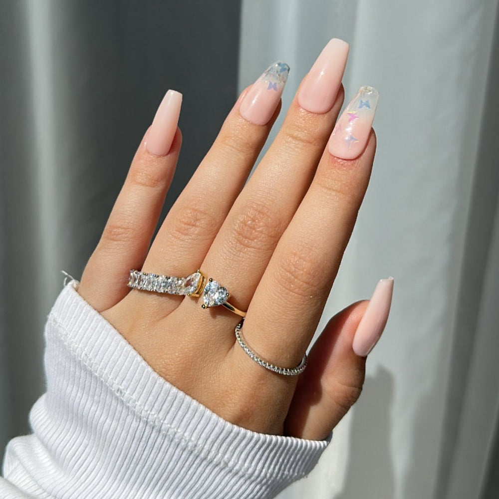 Press-On Nehty Winged sú dokonalým basic kúskom oživeným o motýlie krídla a anjelské číslo. Na prianie ti dokážeme na nechty nakresliť akékoľvek anjelske číslo.
