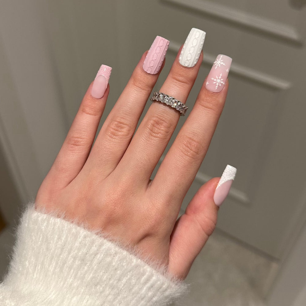 Press-On nehty Sweet Blanket v jemném bílo růžovém provedení přináší do tvé manikúry neodolatelně jemnou dokonalost a zimní nádech. S tímto designem získáš jen samé pochvaly.