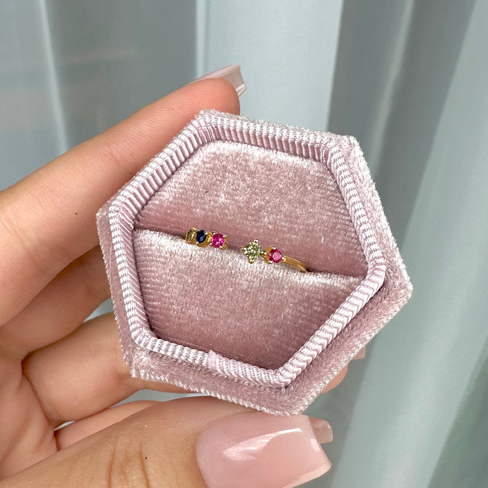 Zároveň jsme chtěli vytvořit kolekci prstýnků, které budou moderní a zároveň nadčasové, ale hlavně kvalitní aby sloužily dlouho a byly vhodné pro každodenní nošení. Proto jsme se při volbě materiálu rozhodli pro stříbro. Díky jeho skvělým vlastnostem a stále dostupné ceně bylo pro nás jasnou volbou. Víme, že nikdo nechce mít zelené prsty poté, co si sundá prstýnky a proto jsme si dali záležet na každém detailu. Každý prstýnek má navíc i ochrannou vrstvu Rhodia (stříbrné šperky) nebo 14k zlata (zlaté šperky).